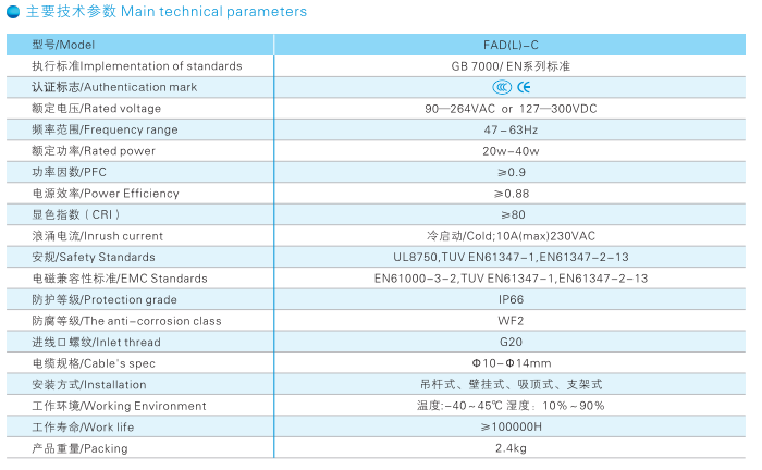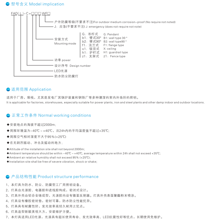 2.灯具由光源腔,电器腔和进线腔构成,密闭式设计。