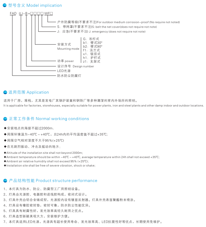 1.本灯具为防水,防尘,防腐型工厂用照明设备。
