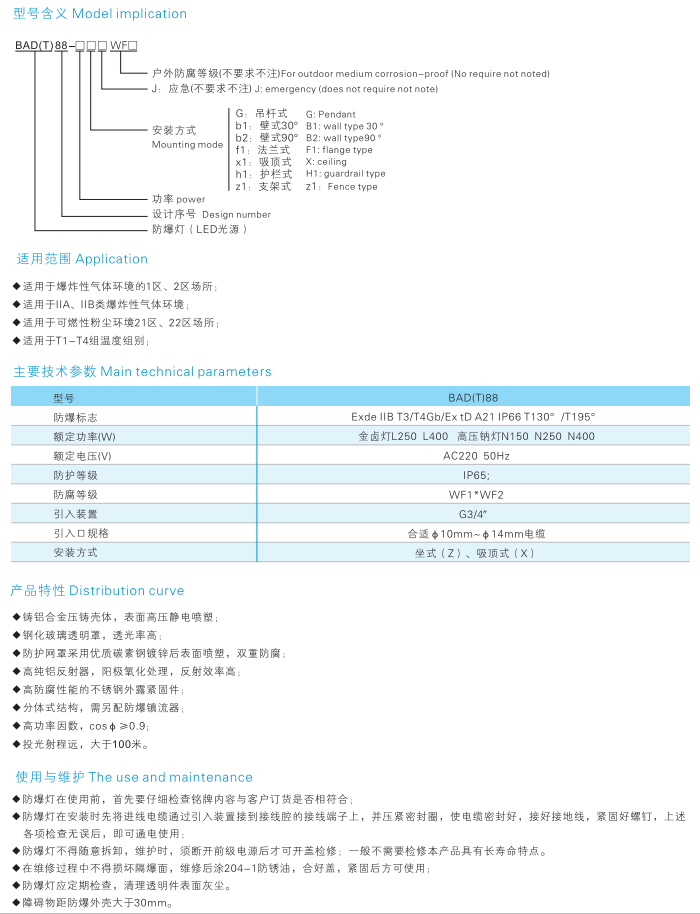 1.铝合金压铸壳体,表面高压静电喷塑。钢化玻璃透明罩,透光率高,抗高能量冲击。