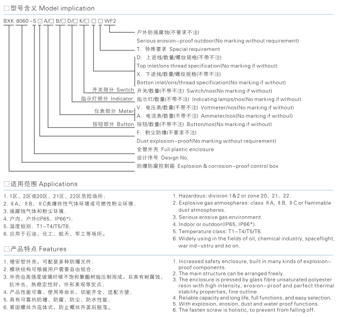 1.增安型外壳,可装配多种防爆元件。