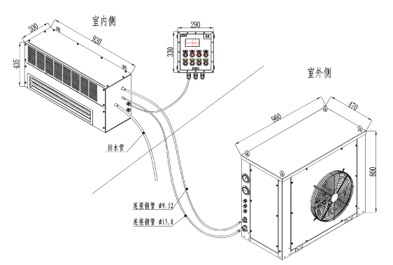 | 室内机外形尺寸 | 长L(mm) | 920 |