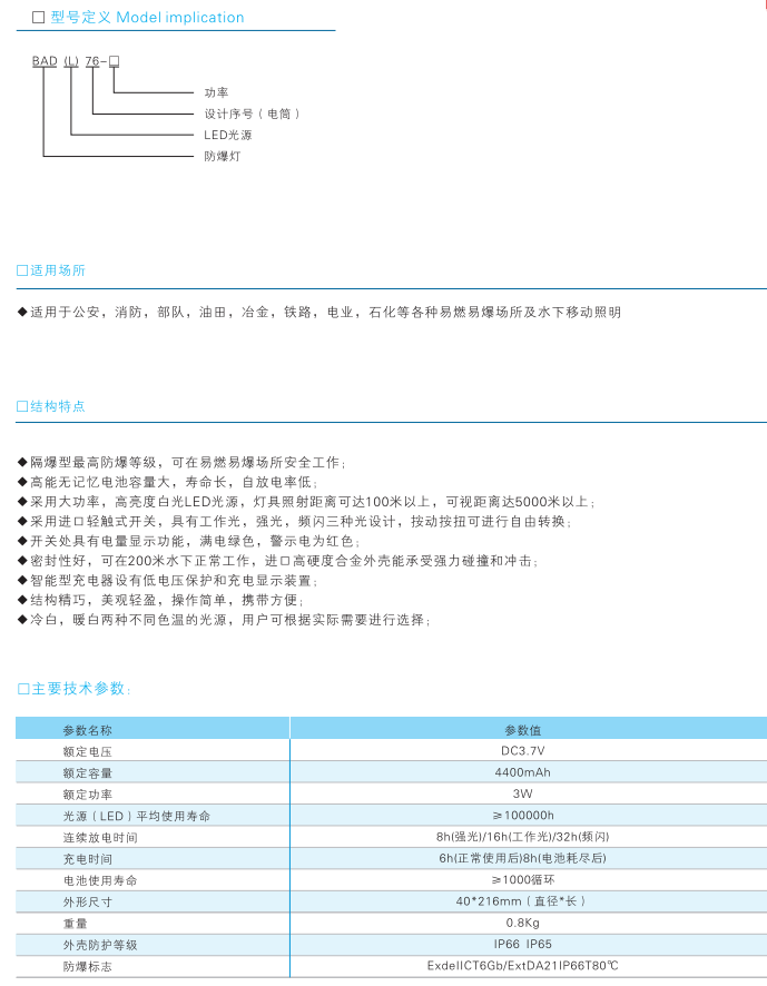 1.防爆型式为隔爆型,可在各种易燃易爆场所工作。