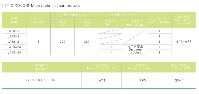 2.内可装防爆型按钮和增安型电流表。