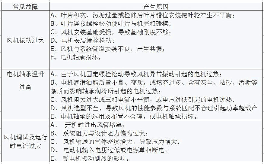 风机运行时的常见故障和原因