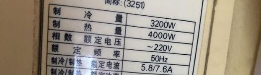 我们可以直接看1.5匹的空调的铭牌,空调铭牌上面都有空调运行电流的标注,例如,上图中的1.5匹的某空调的铭牌,我们从铭牌上可以看到空调运行时的室外机最大电流就是7.6A,室内机的电流是1.5A,那么最大总电流就是7.6A+1.5A=9.1A;