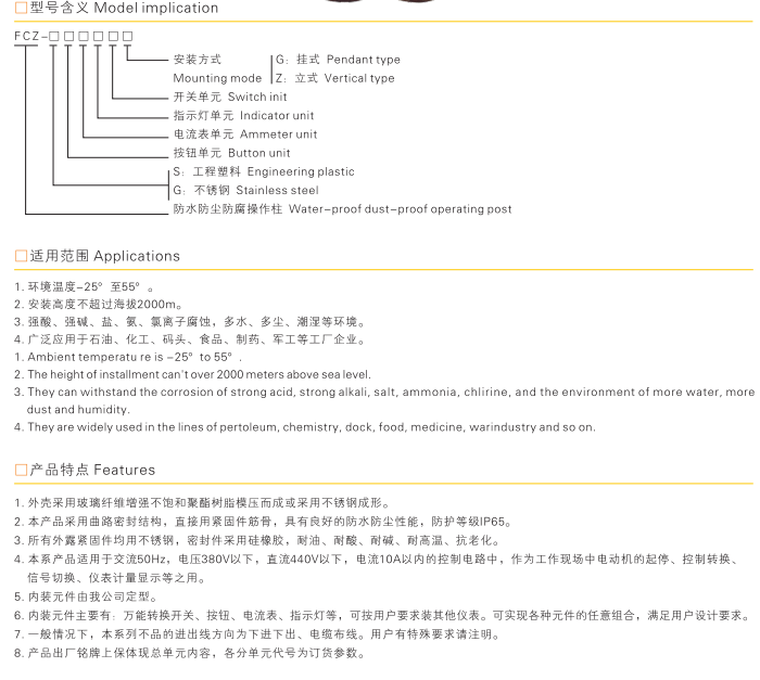1.外壳由高强度玻璃纤维不饱和聚酯树脂压制而成,且耐腐蚀,抗冲击,热稳定性好,外形美观等优点。或采用不锈钢成型。