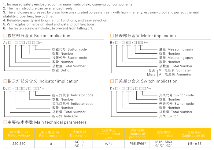 1.增安型外壳,模块结构可根据用户需要自由组合。