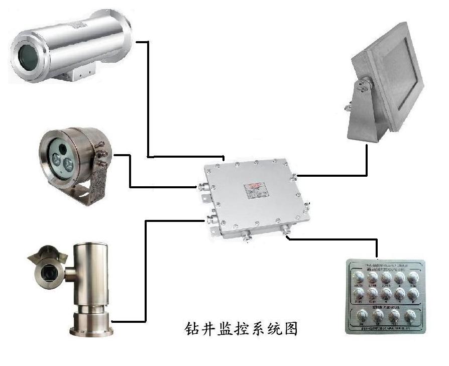 本系统采用画面分割器与云镜控制器组合模式,搭载YTY-A7防爆电动云台及YTS-A1防爆摄像仪,动点、定点相结合,实现二层台、绞车(滚筒)、振动筛(泥浆出口)、泵房、井口等危险点位的监控及生活区、管场区的辅助监控。