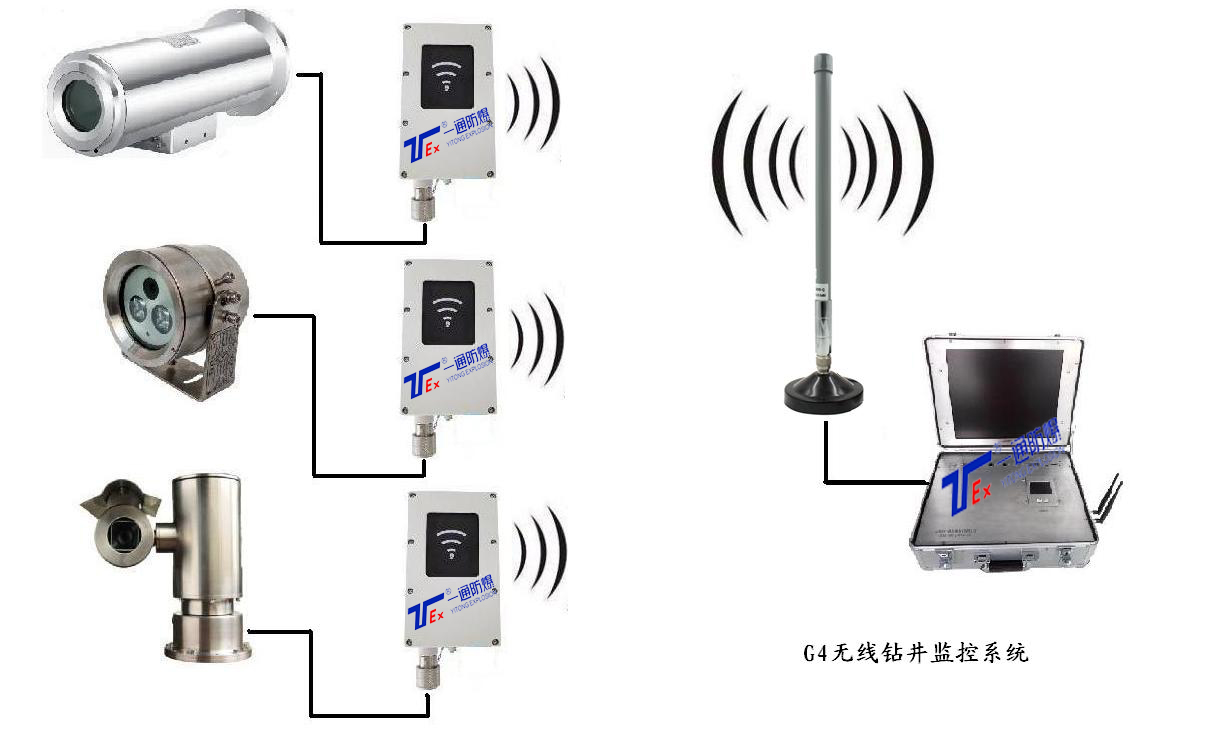 本系统采用移动视频控制主机,搭载YTS-A1防爆摄像仪及YTW-2防爆一体化云台,动点、定点相结合,实现二层台、绞车(滚筒)、振动筛(泥浆出口)、泵房、井口等危险点位的监控及生活区、管场区的辅助监控。