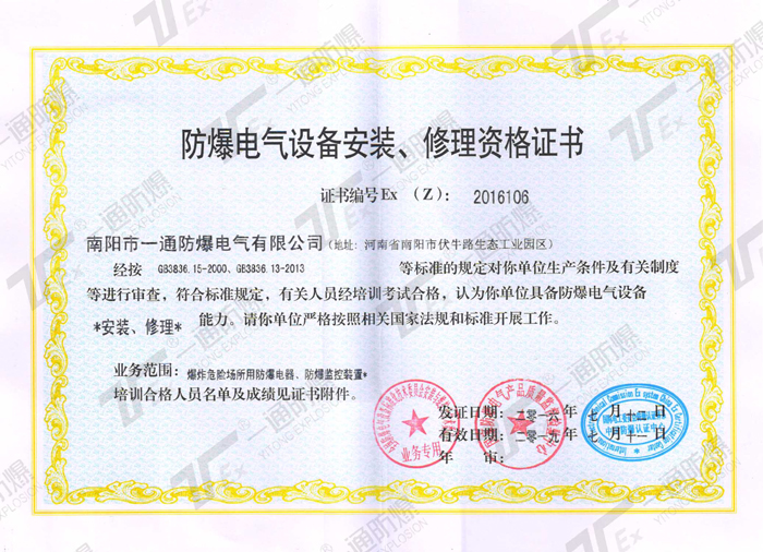 防爆电气设备安装、修理资格证